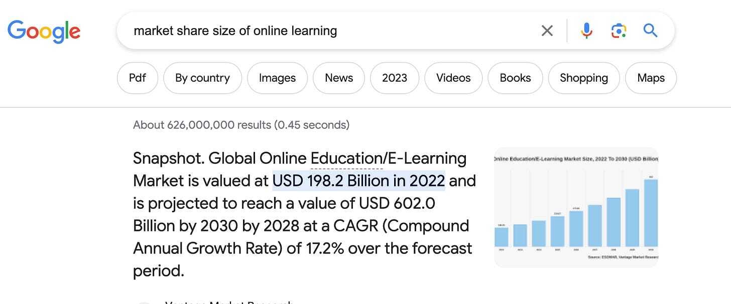 Google: “What market share size of online learning?”